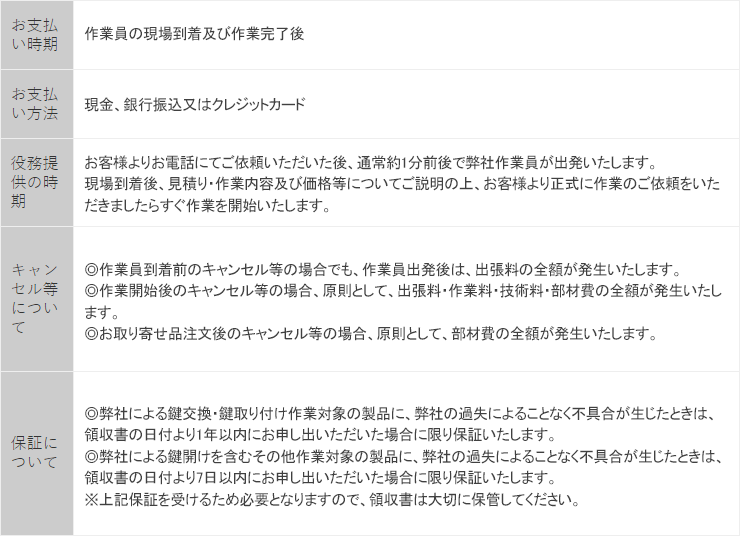 | 上記の他お客様にご負担いただく費用等 | ◎作業にあたり例外的に料金が加算になる場合がございます。詳細はこちらをご確認ください。 |